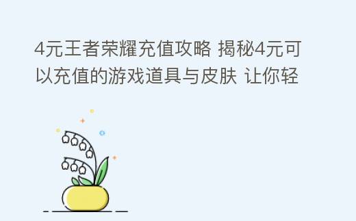 在王者荣耀这款广受欢迎的moba游戏中,玩家们可以通过充值来解锁各种游戏内道具和内容,提升游戏体验。那么,当你在王者荣耀中只有4元人民币的预算时,可以充些什么呢?本文将为你详细介绍几种在4元预算下,可以尝试的充值选择。
