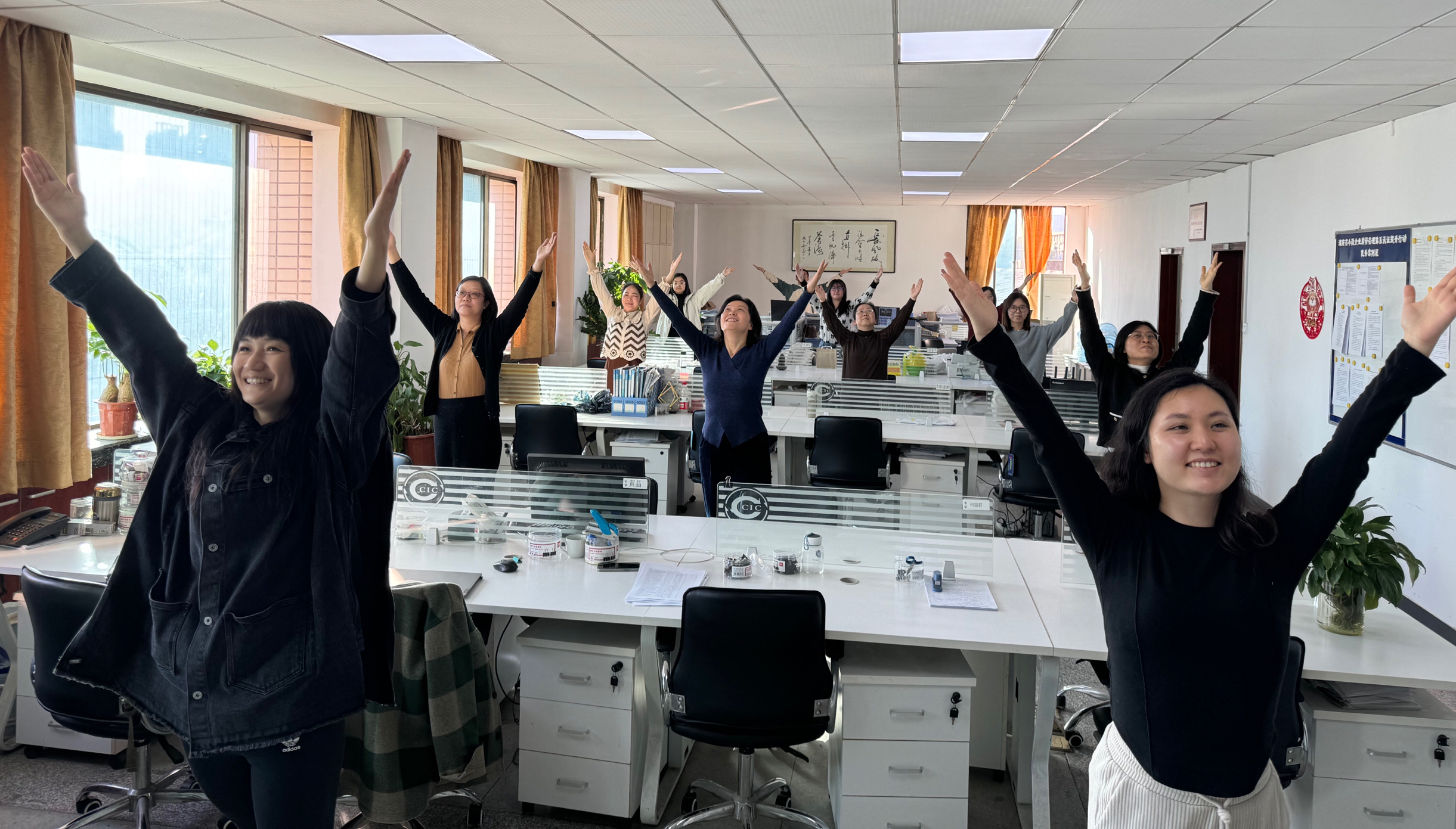 每次三五分钟的工间操,有效舒缓了员工由于长期伏案工作造成身体的僵硬感,释放了肩颈的压力。在黄路意副总经理的督促带领下,主动自觉参与运动的职工越来越多。工间操活动不仅锻炼身体,还促进了大家的相互交流,激发了员工的凝聚力与向心力。通过健身活动,全员将以更饱满的激情全身心投入工作,为实现全年工作目标注入更强动力,为中国中检湖南公司高质量发展做出更大的贡献。