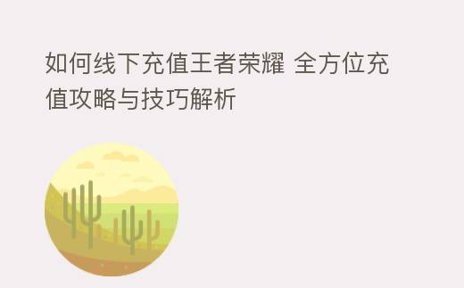 线下充值王者荣耀是一种便捷的充值方式,玩家可以根据自己的需求选择合适的充值方式。在充值过程中,请注意选择正规渠道,核对充值信息,保管好充值卡,以确保充值顺利进行。