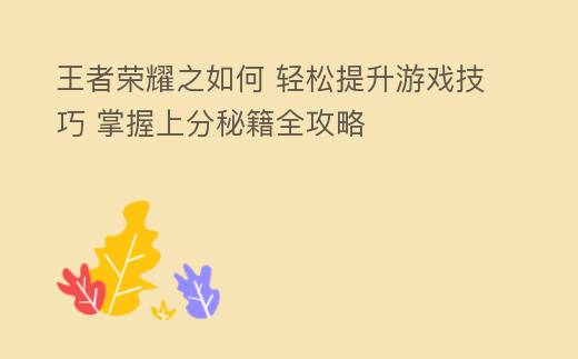 王者荣耀之如何:掌握技巧,畅游峡谷